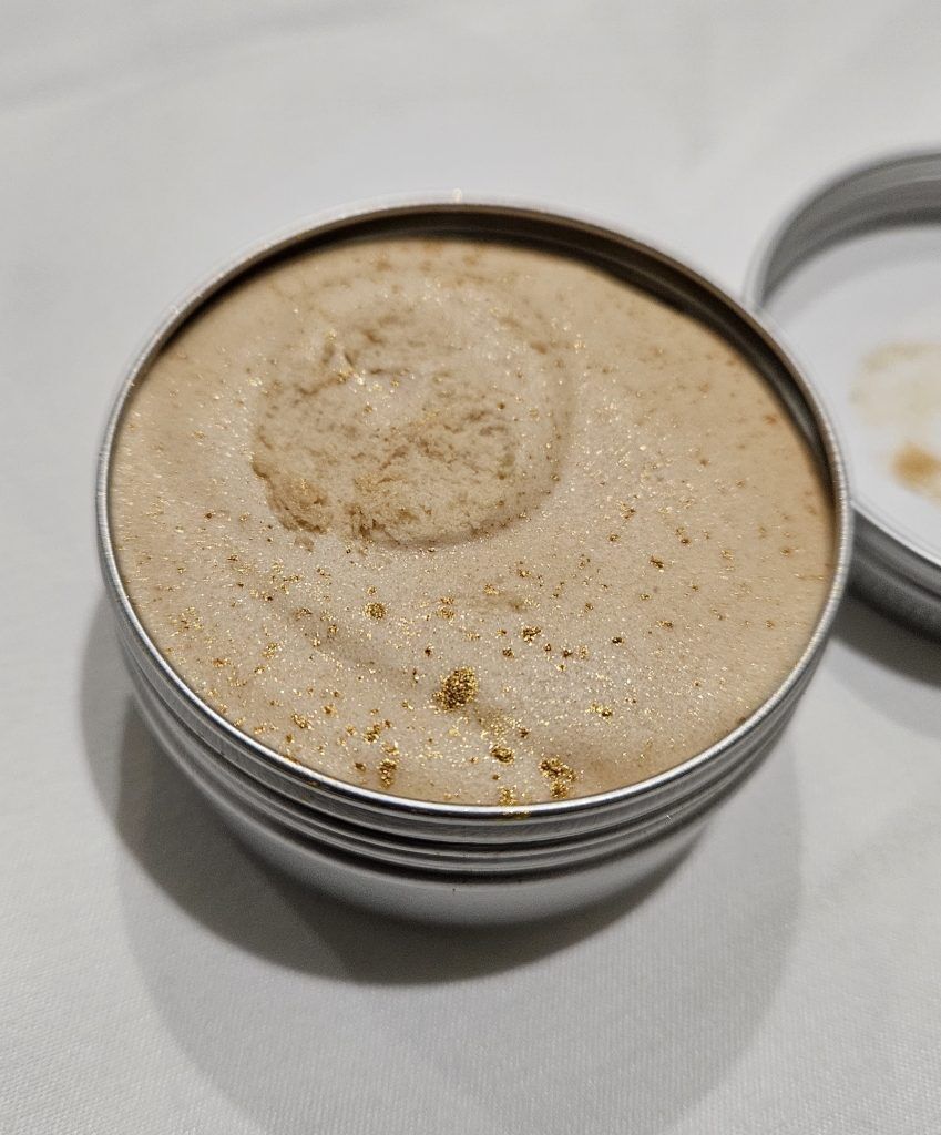 Ingredients: Unrefined Shea butter, Mango seed butter, Organic coconut oil, Grapeseed oil, Sesame oil, Jojoba oil, Tapioca, Tocopherol (Vitamin E), Lavender oil, Benzoin oil, Mango fragrance, C177492